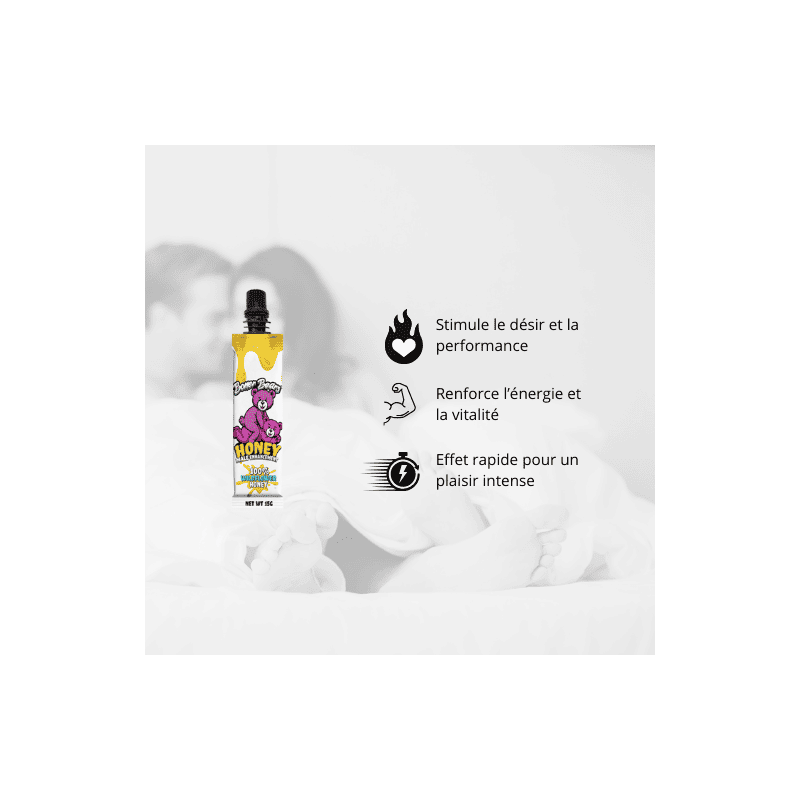 Envie d’une solution naturelle, discrète et savoureuse pour améliorer vos performances sexuelles ? Le miel aphrodisiaque Boner Bears est la réponse idéale. Derrière son packaging décalé se cache une formule puissante à base de miel brut et d’actifs aphrodisiaques reconnus. Pratique, efficace et rapide, ce stick de 15g se glisse facilement dans la poche pour vous accompagner partout.