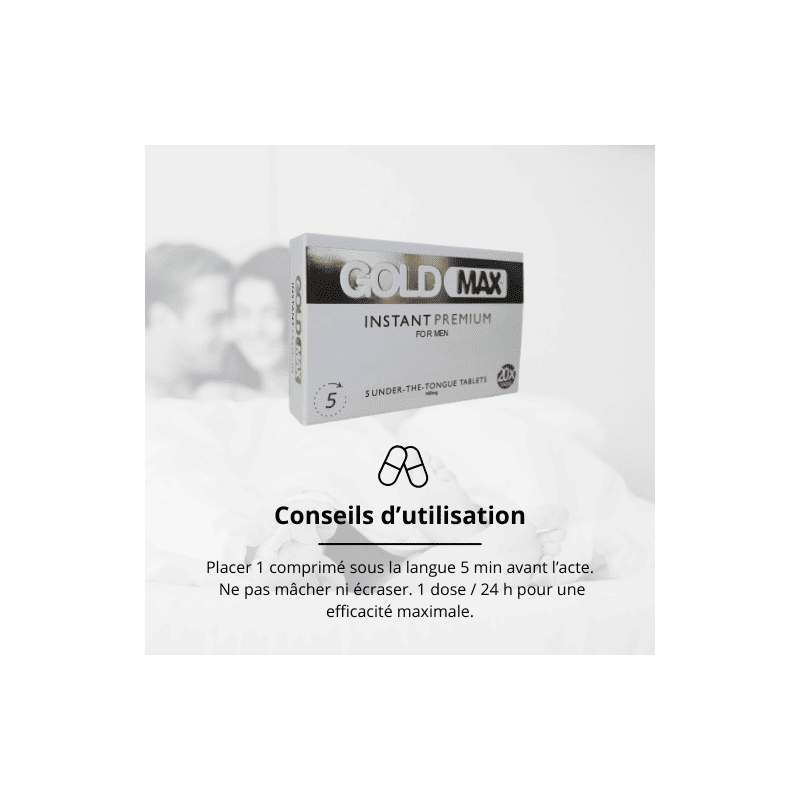 Pour profiter pleinement des bienfaits de GoldMAX Instant Premium, placez le comprimé sous votre langue environ 5 minutes avant l’activité sexuelle. Veillez à manipuler les comprimés avec des mains sèches. Ne divisez pas, ne mâchez pas et n’écrasez pas le comprimé, cela pourrait compromettre son efficacité. Une seule dose par tranche de 24 heures suffit pour maximiser vos performances.