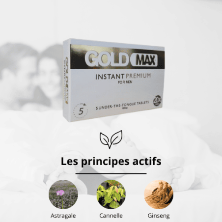 Découvrez l’aphrodisiaque révolutionnaire conçu pour sublimer vos performances sexuelles. GoldMAX Instant Premium est un comprimé innovant qui fond délicatement sous la langue, garantissant une action rapide et efficace, sans effort ni contrainte. Grâce à sa formule avancée, il vous aide à obtenir et maintenir une érection pour des moments d'intimité intensément satisfaisants.